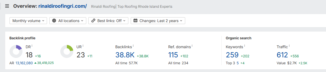 - ✅ Domain Rating 18 → +38.8K Backlinks