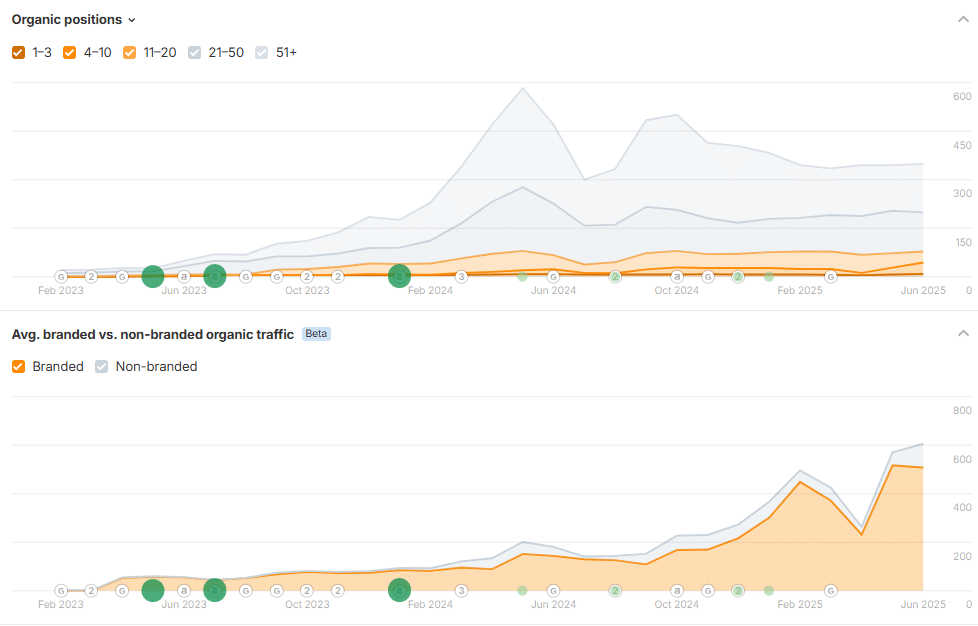 - ✅ 150%+ growth in non-branded keyword rankings